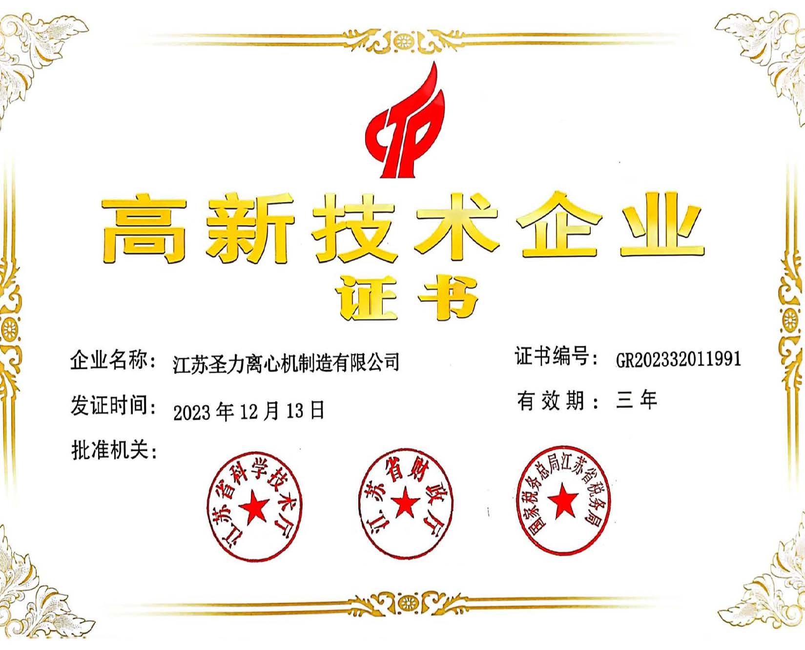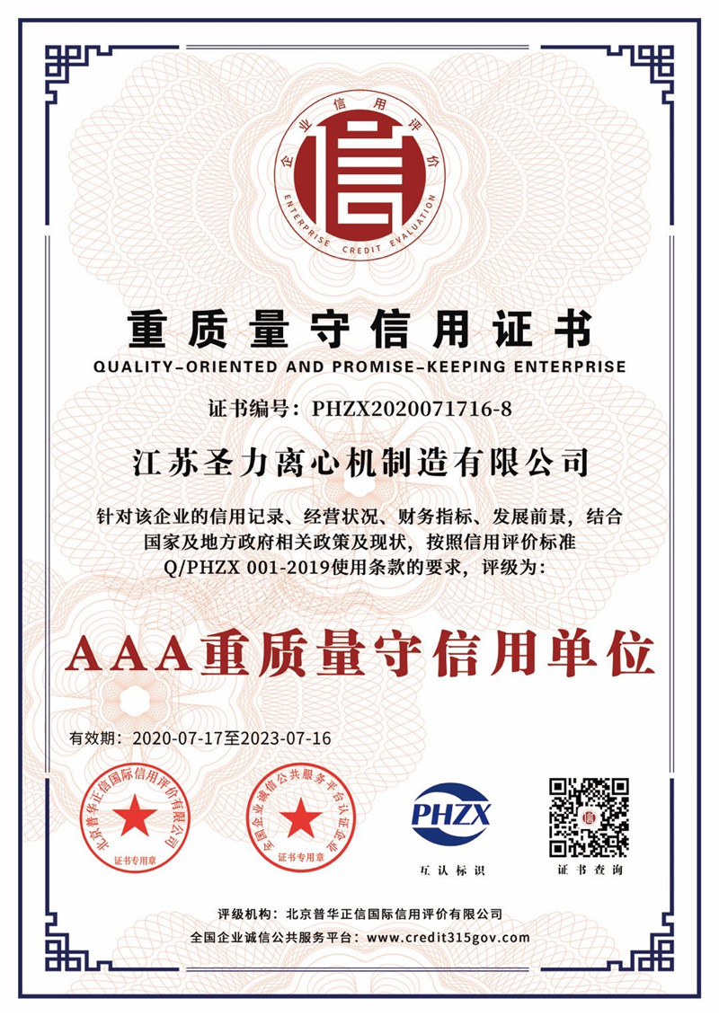江蘇圣力離心機(jī)制造有限公司是國內(nèi)分離機(jī)械行業(yè)中主要的離心機(jī)生產(chǎn)企業(yè),對(duì)離心機(jī)的研究、設(shè)計(jì)、制造有多年的歷史,擁有齊全的設(shè)備、完善的檢測(cè)手段。公司已通過IS09000國際質(zhì)量體系認(rèn)證、ISO14001環(huán)境管理體系認(rèn)證、ISO45001:2018職業(yè)健康安全管理體系認(rèn)證和CE認(rèn)證,是江蘇省高新技術(shù)企業(yè),曾榮獲國家和地方多項(xiàng)榮譽(yù)稱號(hào)。